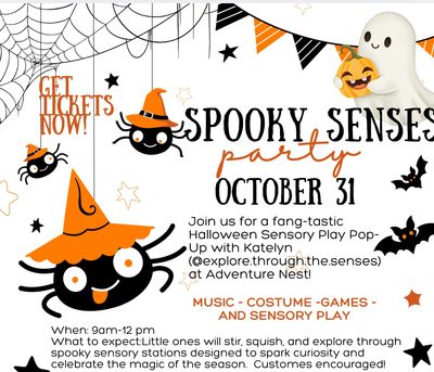 Join us at Adventure Nest for a fang-tastic morning of sensory fun at our Spooky Senses Party with Katelynn (@explore.through.the.senses)!
